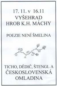 Uvedení projektu multimediálního umělce Michala Cába a dramaturga Ladislava Čumby, ve kterém bude pořízena zvuková nahrávka 12 českých básníků pro "pirátské" rádio poezie ke 200 letům od narození Karla Hynka Máchy.
